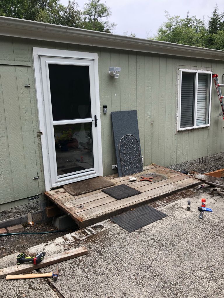 Actually, I only pressure washed the south and west sides, which was my plan. Before the washing I removed some more gutters and downspouts on the west side. We removed the ones on the south side on the 4th, along with the railings on the side deck. The photo was taken before washing. There is a lot of gunk behind the downspouts so they needed to be removed before pressure washing.